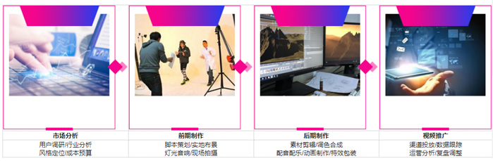| 后期制作 | 素材剪辑、调色和成、配音配乐、动画制作、特效包装 |