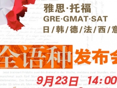同样是出国留学,以前我们学习雅思、托福,GRE、GMAT、SAT、ACT,现在朗阁给你更多选择!新增小语种课程,为你开启一片精彩新世界!9月23日 14:00,让我们同聚世贸酒店芙蓉厅,全语种,全优惠!