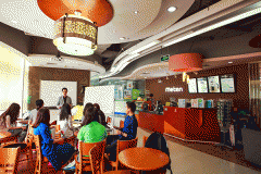 纯正英文环境:从视觉、听觉两个方面,通过环境装饰,咖啡吧,电影,广播,阅读材料等方式,实现犹如置身海外的学习环境。
